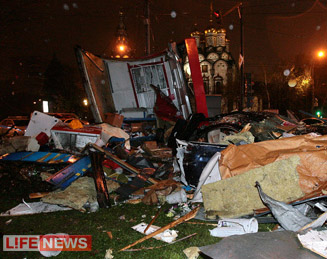 В Москве спортивный автомобиль на полной скорости сбил две торговые палатки. Авария произошла на Комсомольском проспекте на пересечении с улицей Тимура Фрунзе.